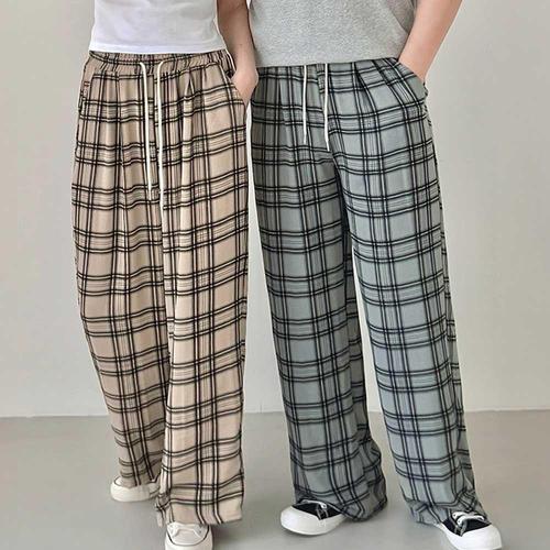 커플룩 남녀공용 여름 가벼운 루즈핏 체크 와이드팬츠 WFK5UCJ