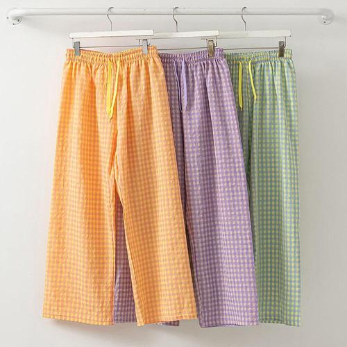 [다잇템]여성 실내복 콘트라스트 SS 커플룩 격자 팬츠
