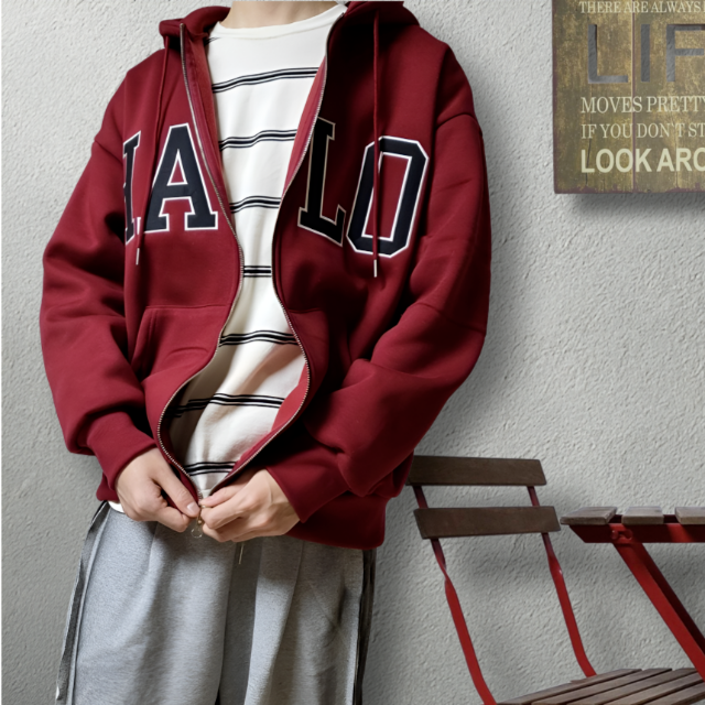 커플 기모 두꺼운 후드집업 루즈핏 카디건 멋스러운 박시 점퍼 레터링 후드티