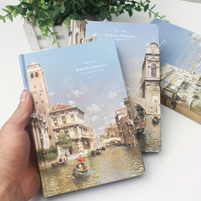 TEMU 1개 베네치아 풍경 핸드북 - 고등학교 학생 및 예술 애호가에게 이상적인 빈티지 영감 건축 노트북, 도시 풍경 일러스트가 있는 흰색 커버, 예술적 노트북|빈티지 영감 디자인|고급 종이