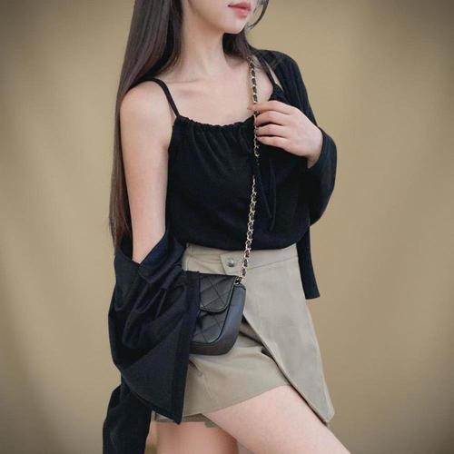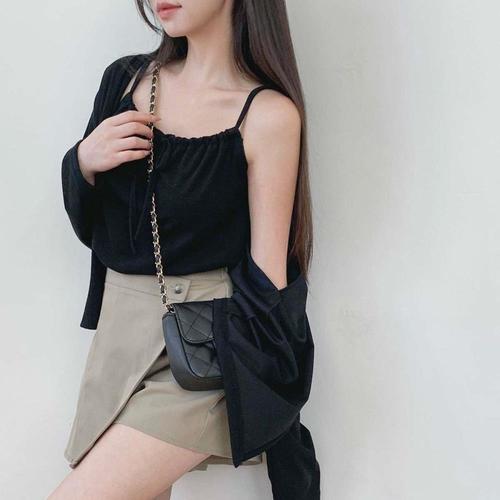 [옷자락]여성 무지 컬러 셔링 어깨끈 나시와 가디건 세트