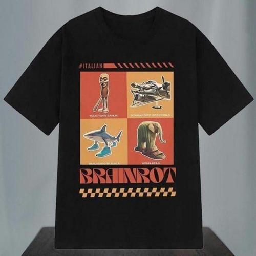 남자 반팔 티셔츠 브레인롯 이탈리아 리릴리라 캐릭터 반팔 밈 WFN3KX2