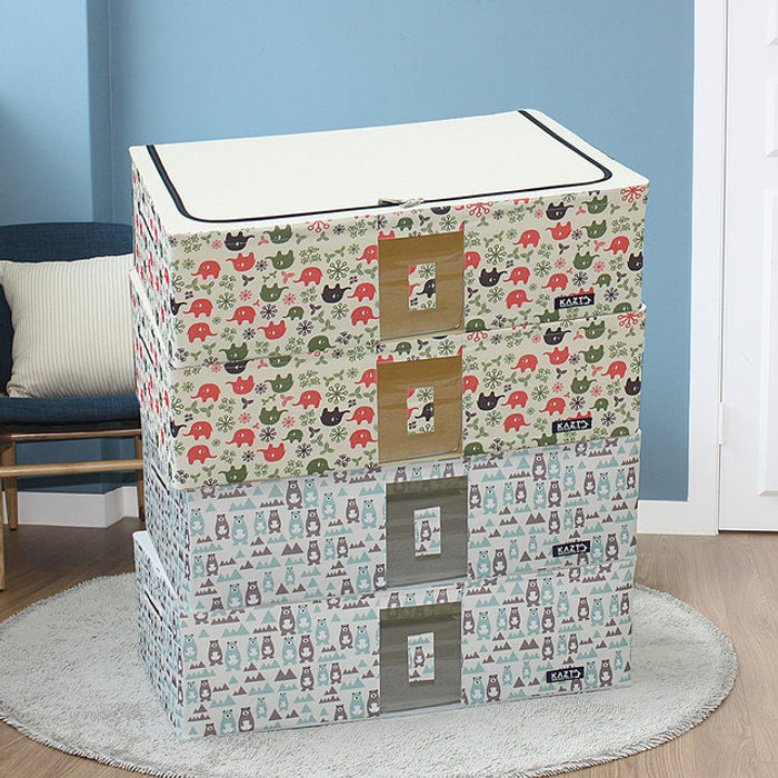캐릭터 의류 소품 정리 원단 와이어 리빙박스 92L 언더베드 2개