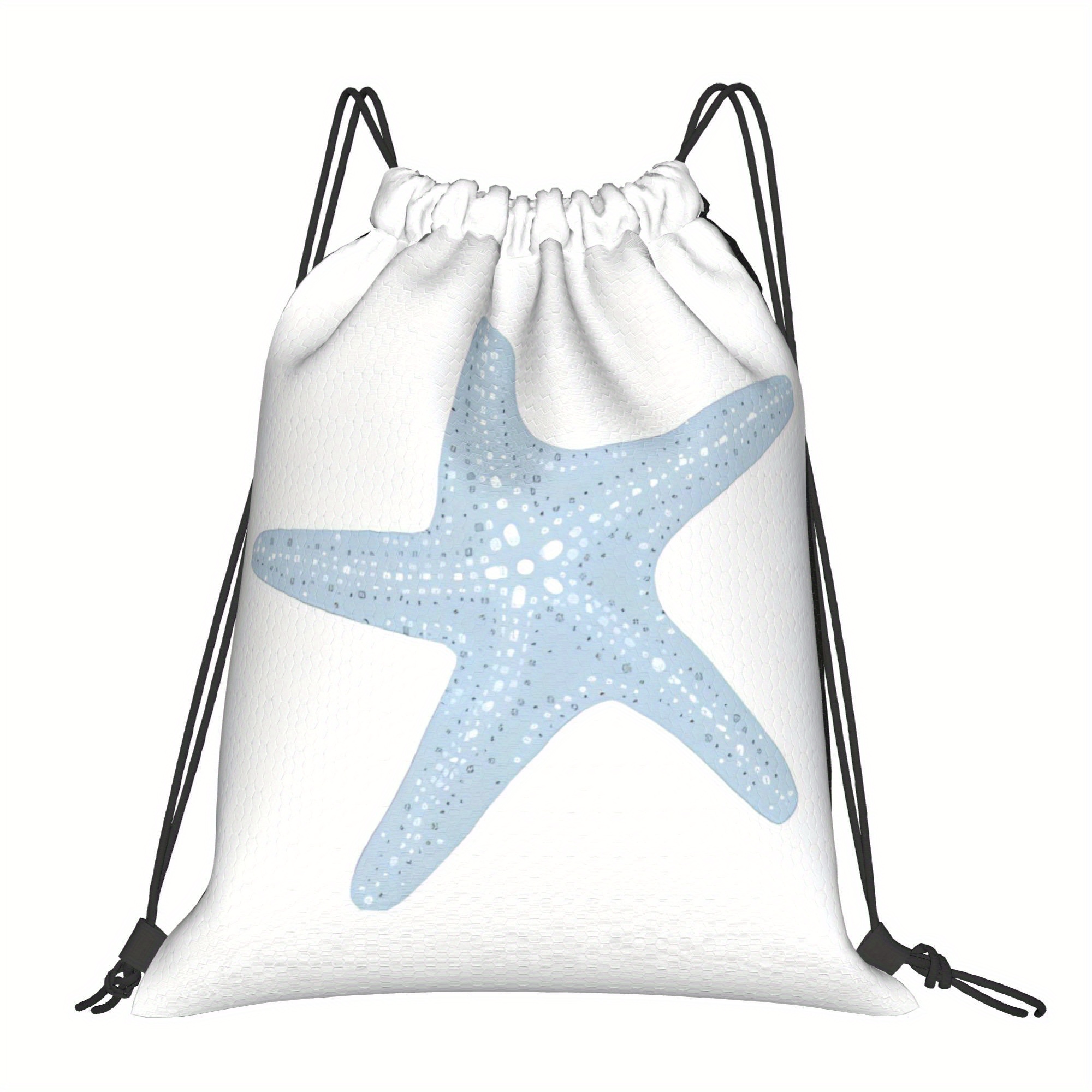 TEMU 블루 스타 피쉬 드로스트링 백팩 - 대용량, 조절 가능한 어깨 스트랩, 실용적인 포켓, 기계 세탁 가능, 스포츠, 여행, 캠핑에 완벽, 여행용 백팩, 캠핑 장비, 생동감 있는 디자인, 소프트쉘 구조