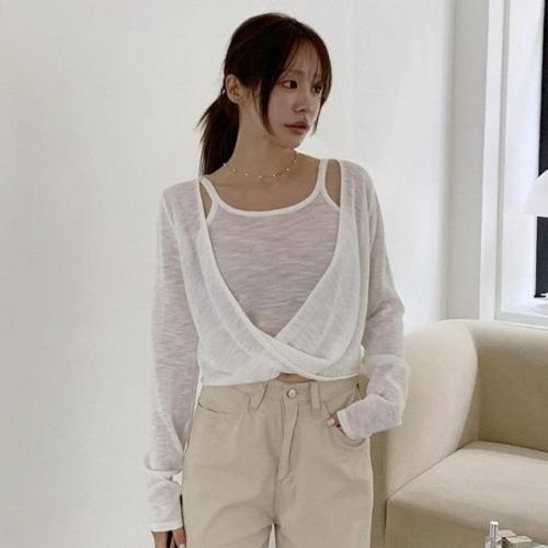 [다잇템][다잇템] 여자 스웨터 코디 SS 들러리룩 슬리브리스 딥브이넥 세트_17937286_588872