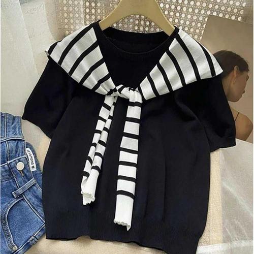 반팔 니트 여성 여름 코디 스트라이프 숄 세트 출근 WFL9CLZ