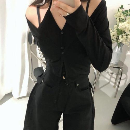 [다잇템][다잇템] 여자 슬리브리스 홑터넥 카디건 코디 싱글버튼 탱크 세트_23909048_588872