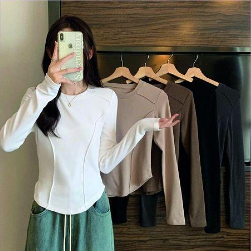 [에이치플러스몰]여성 긴팔티셔츠 편한코디 내추럴룩 슬림티셔츠