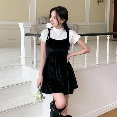 [다잇템][다잇템] 여자 코르셋 벨루어 후레아 FW 리본 미니원피스_24365750_588872