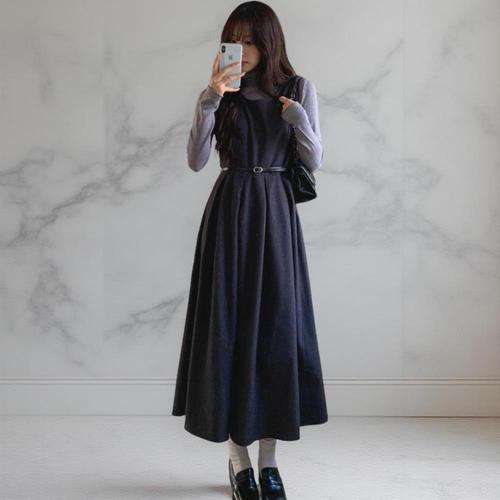 [다잇템][다잇템] 여성 코르셋 어깨끈 후레아 울혼방 롱 원피스_23351076_588872