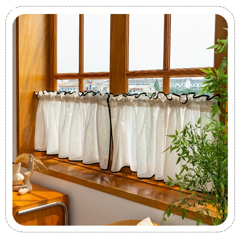 TEMU 1개, 일본 스타일 블랙 트림 반차광 패션 쇼트 커튼, 상단 로드 포켓, 고품질 소프트 단열, 안감 없음, 세탁 가능, 주방·카페·베이 윈도우·발코니 장식용