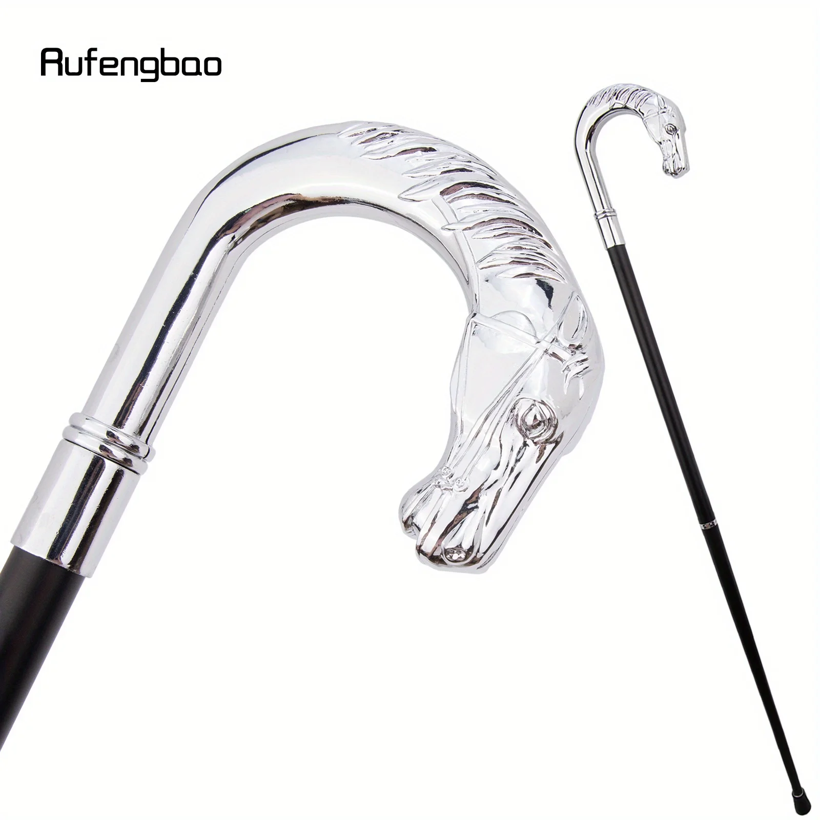화이트 럭셔리 말머리 모양 손잡이 파티용 우아한 지팡이, 크로시어 손잡이 워킹스틱, 공연용 스테이지 지팡이 93cm
