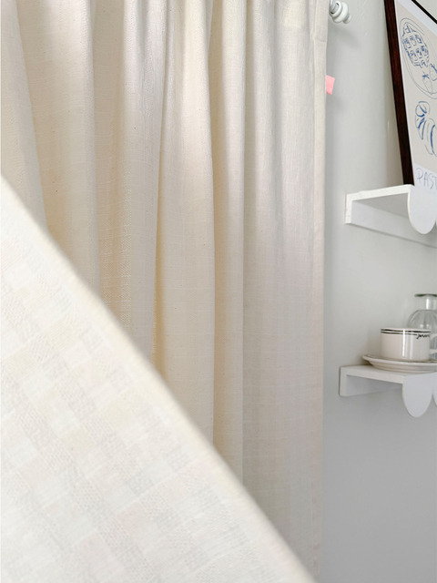 맞춤제작 와플 기모체크 가리개 창문형 바람막이 거실커튼