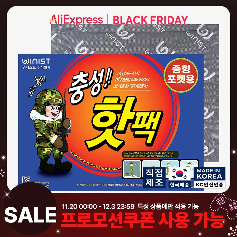 [25년제조]충성 핫팩 100g 중형 군용 보온대 30매