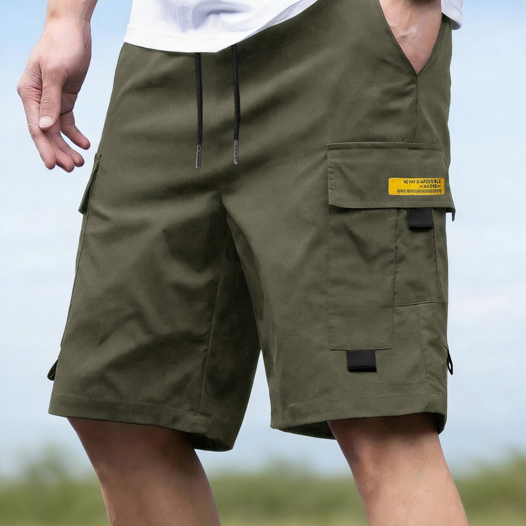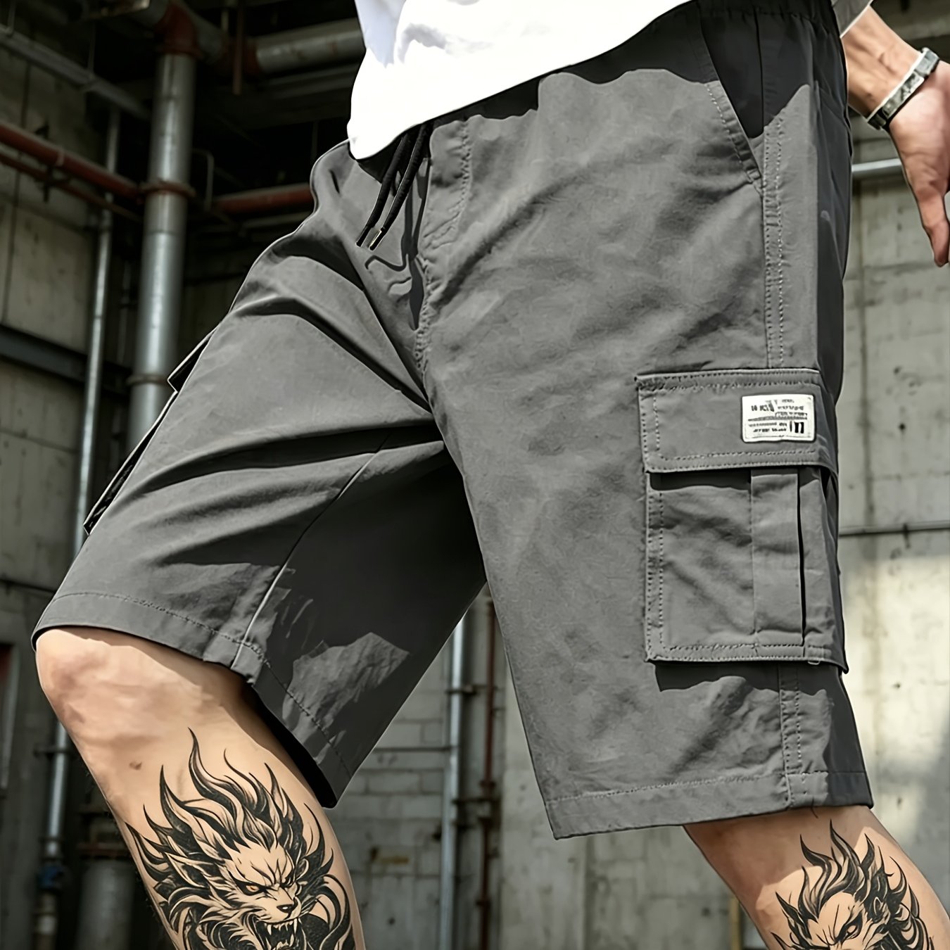 TEMU 남성용 패셔너블 캐주얼 작업복 반바지 1벌, 봄/여름용, 다중 포켓 및 드로스트링 디자인. 캐주얼 스포츠, 야외 활동, 캠핑, 여행, 휴가에 적합. 남성, 파트너, 가족을 위한 선물로 이상적. 남성 의류, 남성용 웨딩 반바지, 남성용 운동 바지