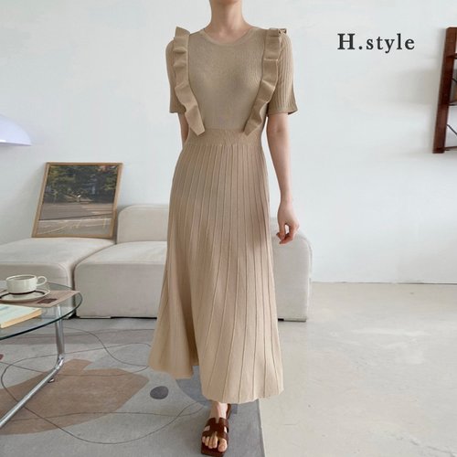 H스타일(NS)프릴니트OPS/여름/반팔/OPS/쉬폰/원피스/홈웨어/캐주얼/나염/루즈핏