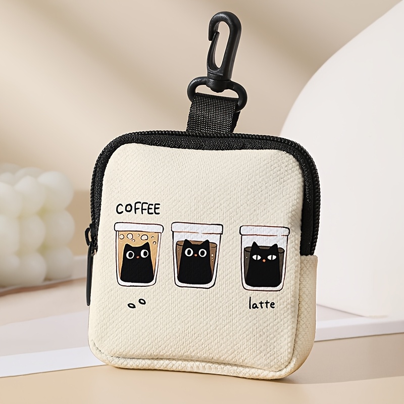 TEMU 1개, 음료 캣 컵 패턴 프린트 동전 지갑 버클 및 지퍼 포켓 포함, 다기능 보관 가방, 동전 수집 정리함, 남녀 공용