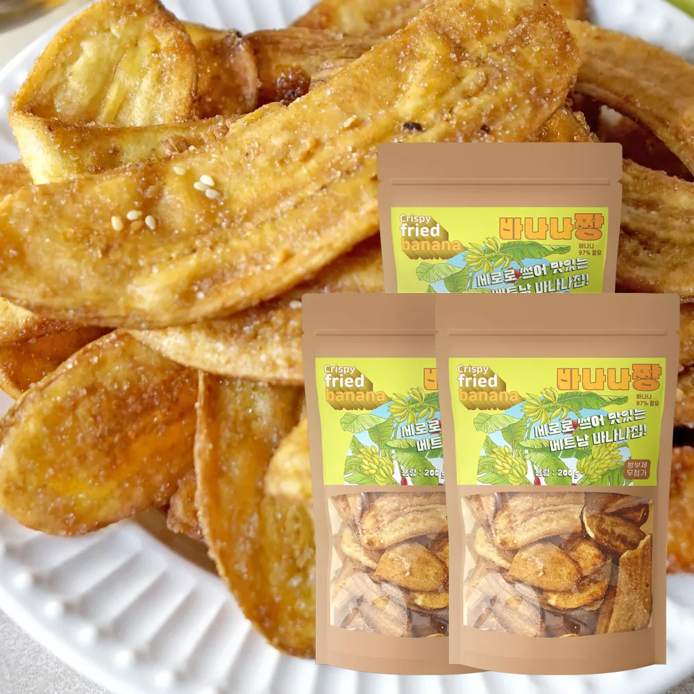 베트남 바나나를 길게 썰어 튀긴 스낵 바나나칩 바나나짱 200g × 3개, 사무실간식 탕비실간식
