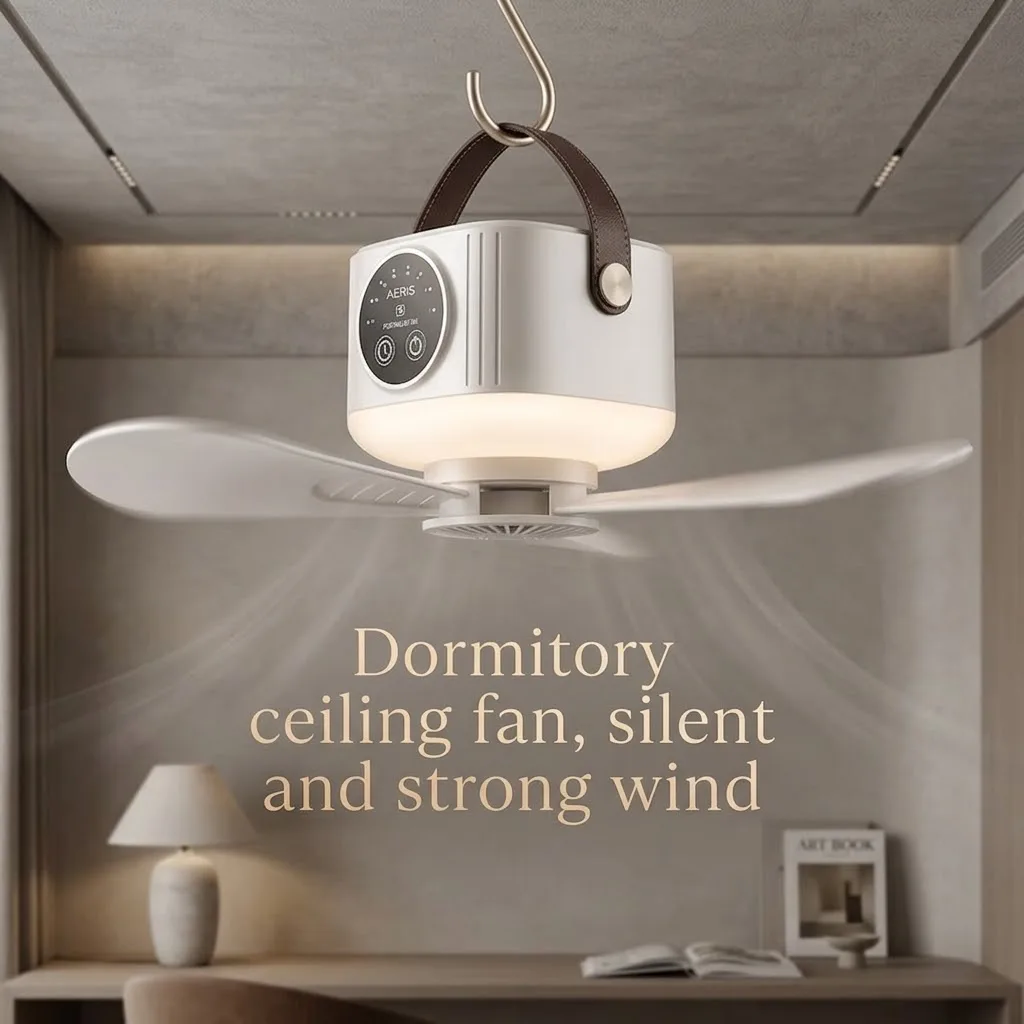 2026년형 새로운 휴대용 충전식 천장 선풍기, 무선 USB 걸이형 선풍기, 학생 기숙사 침대, 야외 캠핑용