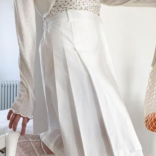[디자이너몰]여성 코튼 핀턱 플레어 뒷밴딩 미디스커트