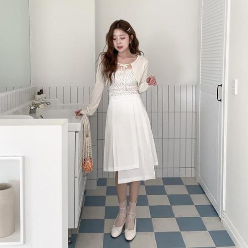 [미라클세븐]여성용 봄 시즌 피크닉 스타일 플레어 캉캉 면 롱스커트