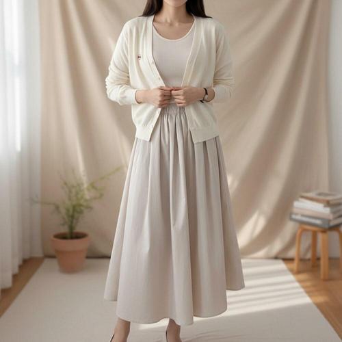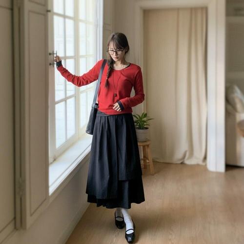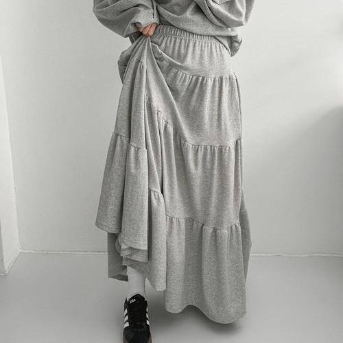 [옷자락]여성 사계절 코튼 레이어드 플레어 롱스커트