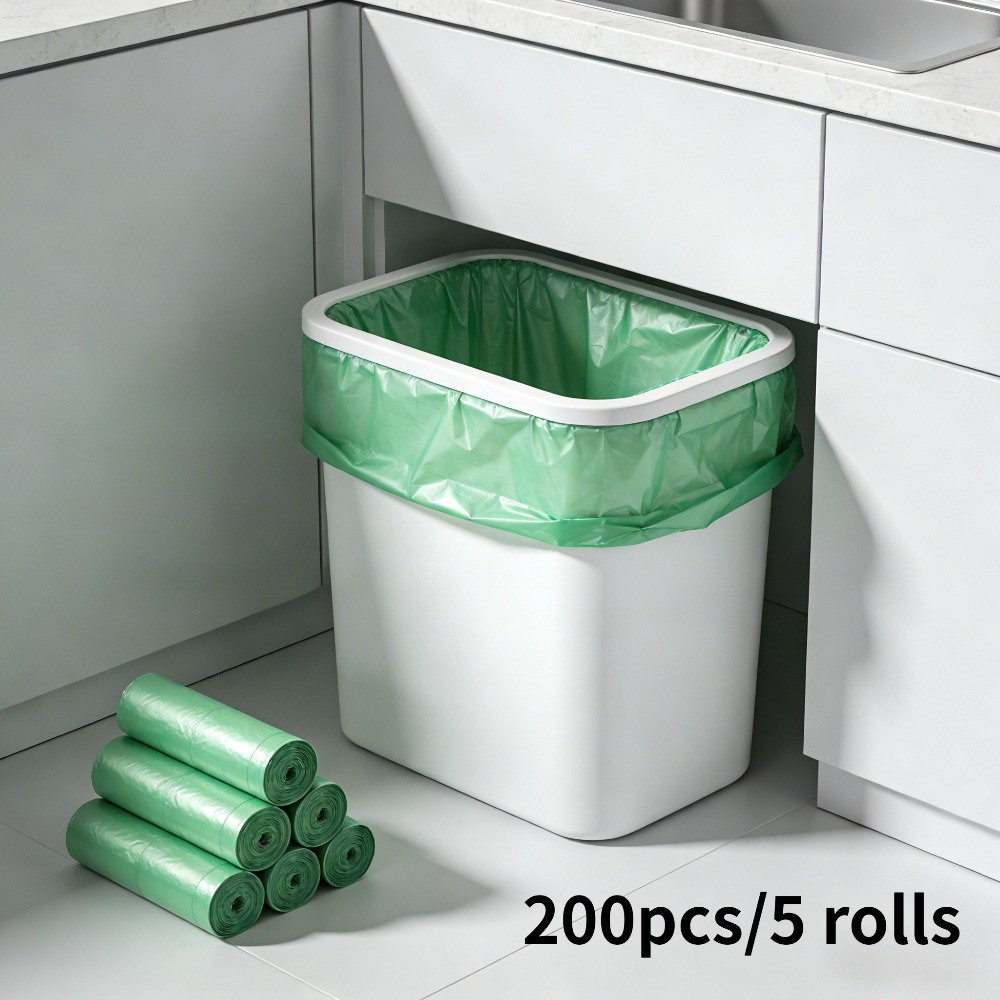 TEMU 200개/5롤 초고밀도 누수 방지 쓰레기 봉투, 가정, 사무실, 주방, 욕실, 야외 및 상업용 - 및 과 호환, 주방 쓰레기 처리, 안전한 드로스트링 잠금, 냄새 방지 소재