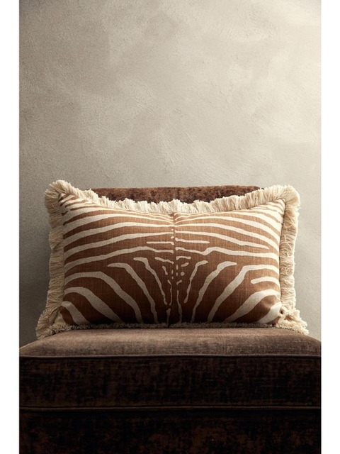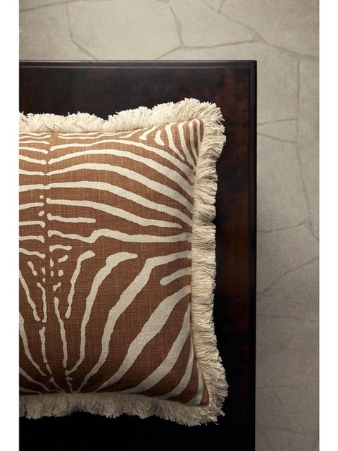 [에이치엔엠] 프린지 리넨 블렌드 쿠션 커버 라이트 브라운/지브라 프린트 1237872003