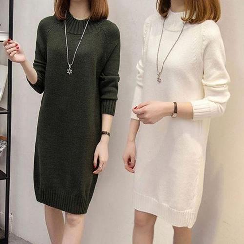 [브리치] / NO675 심플 무지 반폴라 긴팔 니트 원피스