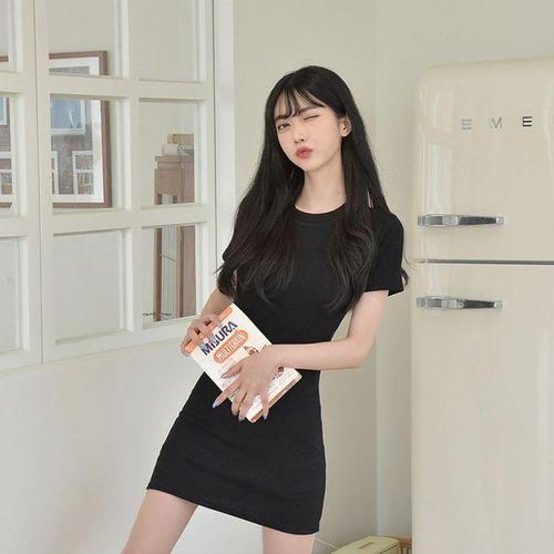 [에이치플러스몰]여성반팔미니원피스 1P 여자 무지 딱붙는 스커트