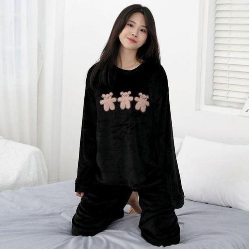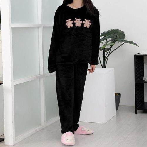 [셀러허브_여성트랜드패션]ONM 쿠키베어블랙 겨울 수면세트 극세사잠옷 파자마 홈