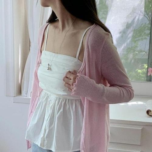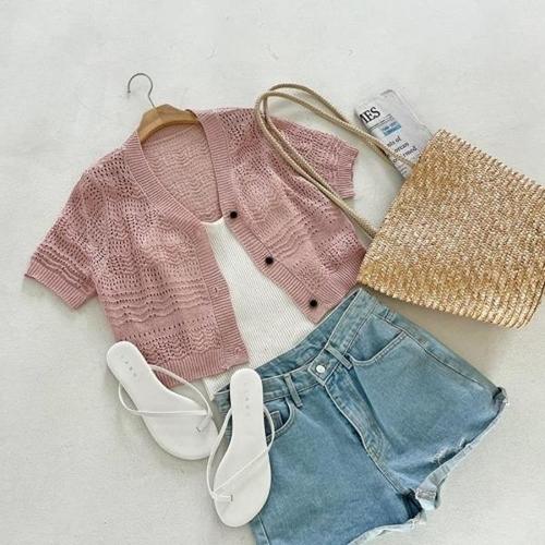 [다잇템][다잇템] 여자 면원단 펀칭 SS 슬리브리스 썸머 카디건 쿨 오픈 세트_18009467_588872