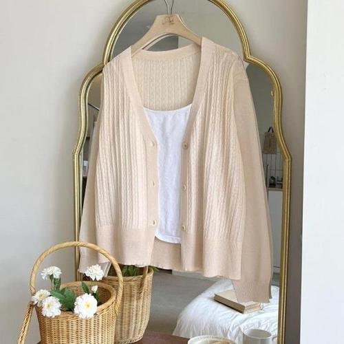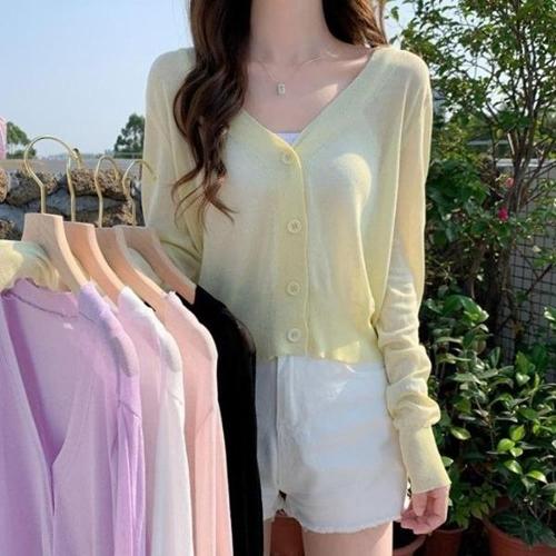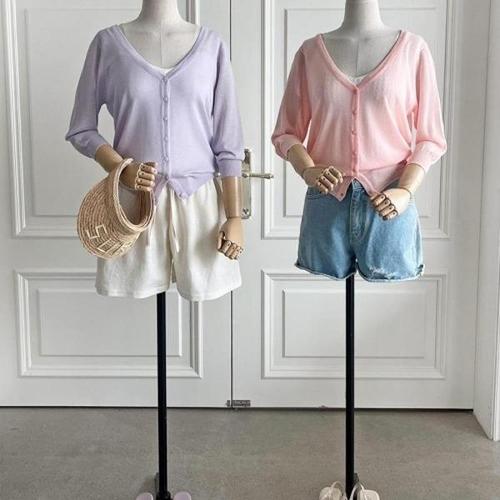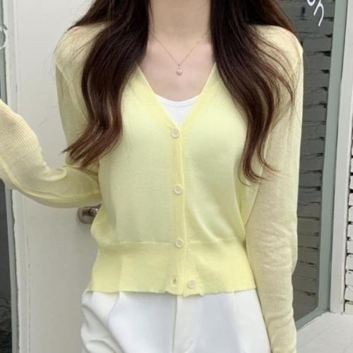 [다잇템][다잇템] 여자 쿨링 미니멀리즘 민무늬 SS 쿨 버튼 V넥 가디건_17192006_588872