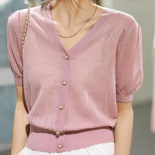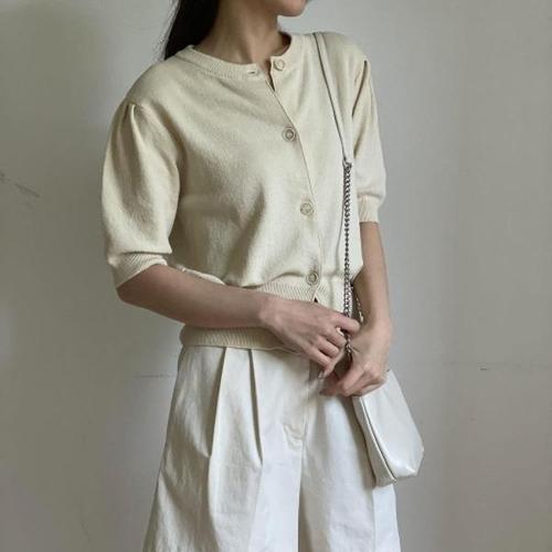 빅사이즈 봄여름 가디건 브이넥 퍼프 쿨 심플 쿨 조끼