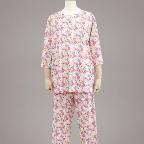 [미라클세븐]여성용 쿨링 꽃무늬 7부 소매 반팔 티셔츠 긴바지 홈웨어 세트