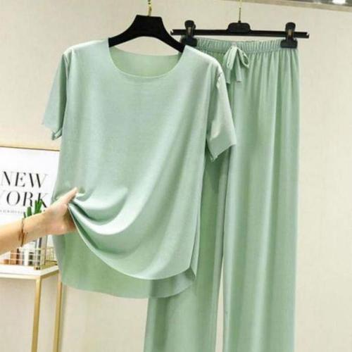 [신상오픈런]여성용 쿨링 꽃무늬 7부 소매 반팔 티셔츠 긴바지 홈웨어 세트