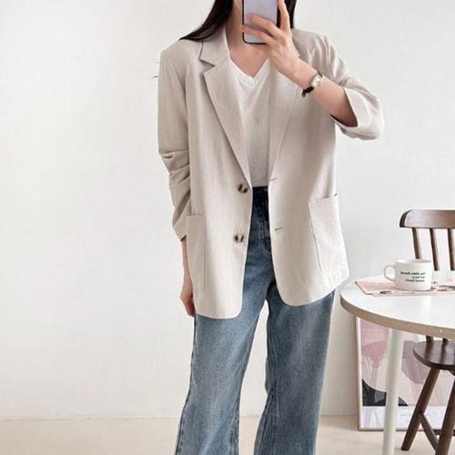 [옷자락]여성 클래식 린넨 쿨링 긴팔 오버사이즈 자켓