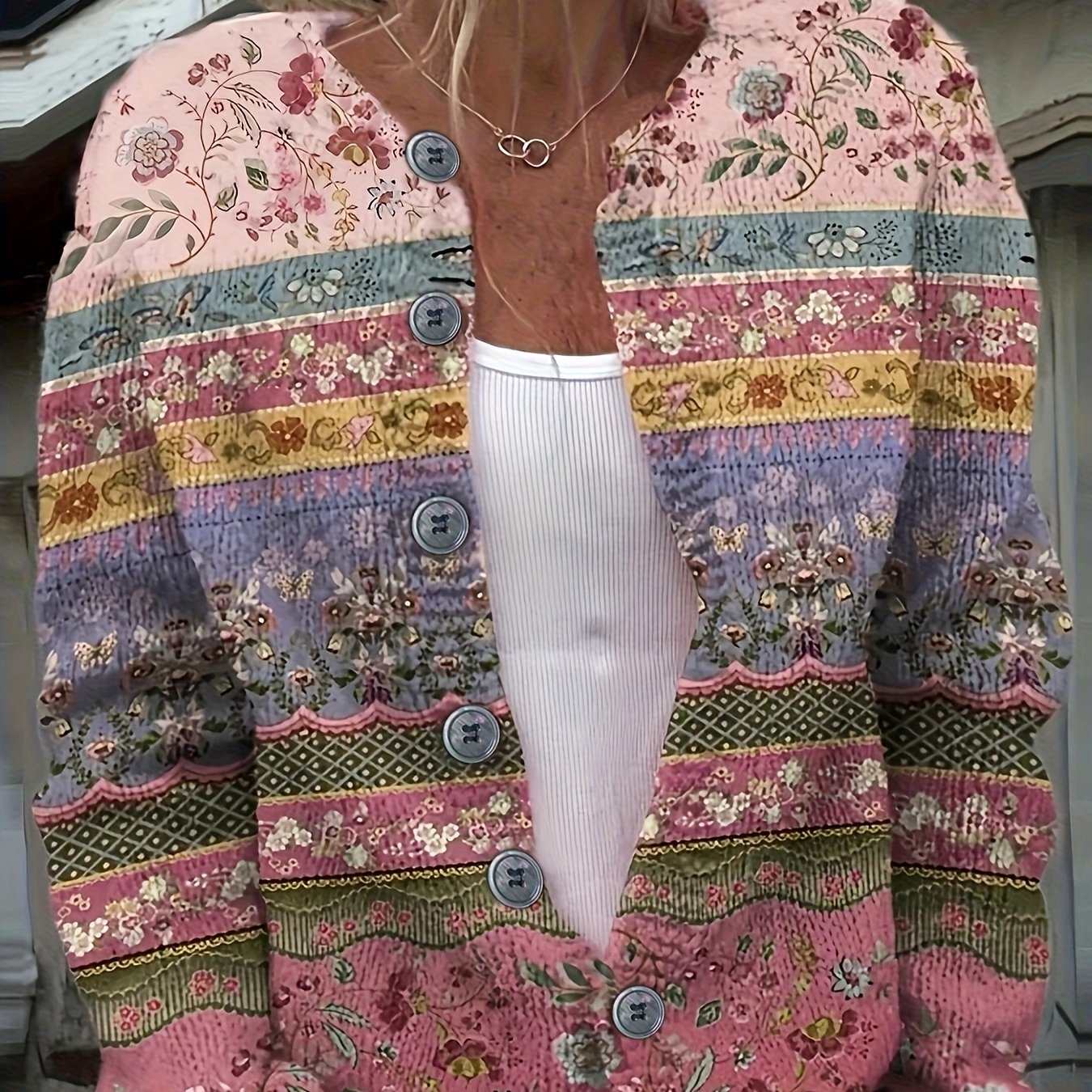TEMU 여성용 경량 플로랄 프린트 가디건 - 캐주얼 롱 슬리브 라운드 넥 오픈 프론트 스웨터, 봄 & 가을용 레귤러 핏 카디건