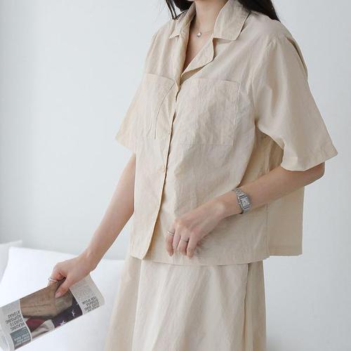 [옷자락]여자 더블포켓 나일론자켓 반팔셔츠 쿨 카라넥 블라우스