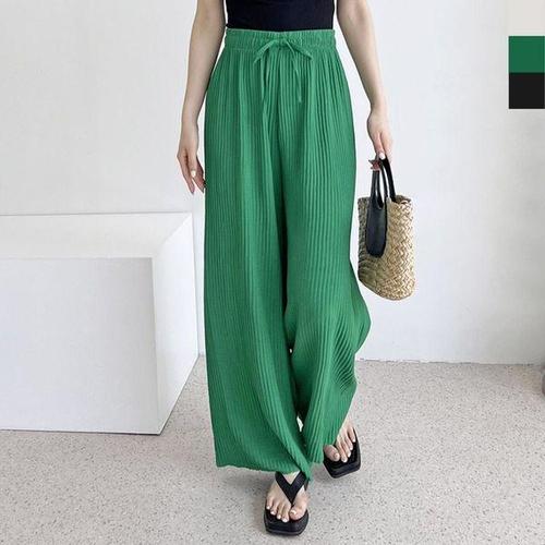 [에이치플러스몰]여자 플리츠 쿨린넨 주름 통 와이드 여름바지