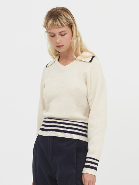 [준바이준케이] 오픈 카라 스트라이프 니트크림