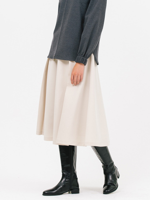 [준바이준케이] 프론트 턱 플레어 스커트 크림