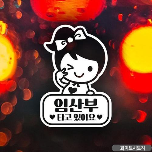 [QNWZPZ3D_57]자동차스티커 윙크 임산부 타고있어 화이트