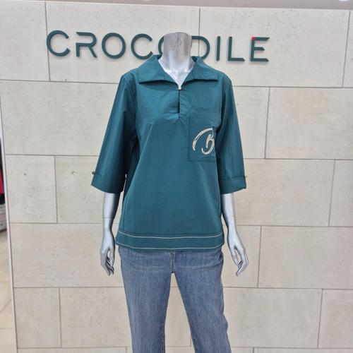 [크로커다일 레이디]시보리배색 라운드넥 블라우스 CLDMBL133