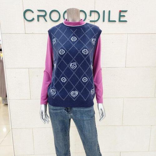 [롯데백화점][크로커다일 레이디]최 초가 142000원_배색 넥 라운드 니트 베스트 CLDWSW208