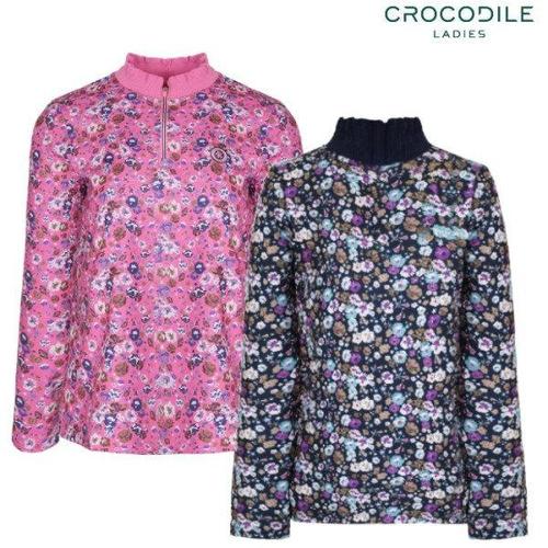 [크로커다일레이디](CLDWTS207) 코트나 소재 플라워 반집업 티셔츠_GN