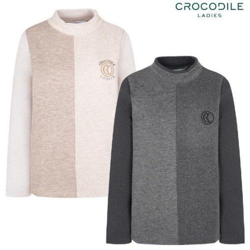 [크로커다일레이디](CLDWTS111) 부클 배색 니쥬시보리 넥 긴팔 티셔츠_GN