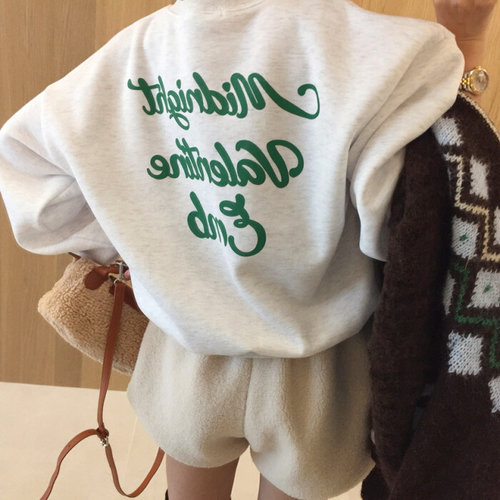 아이미마인 / 필기체 배색 레터링 라운드 기모 겨울맨투맨 (3color)
