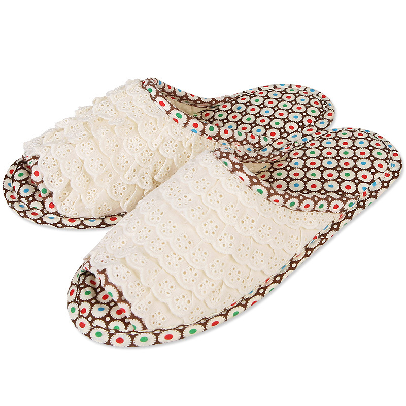 TEMU 브라운 레이스 면실내화 더블패드 이중쿠션 거실화 슬리퍼 실내화 덧신 퀼트 패브릭 거실슬리퍼 층간소음