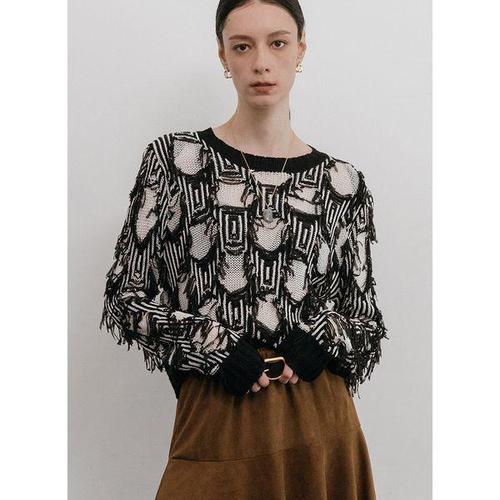 [막스까르띠지오]그런지 무드 프린지 크롭 니트
